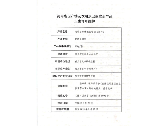 鞏義市先科凈水材料廠20多年來始終以凈化水源,造福人類為己任,2011年收購鞏義市興龍凈水材料廠投資4000萬建設導熱油鍋爐生產線2條,噴霧干燥塔2座成為目前國內外較大的無機凈水材料生產企業。有職工50余名,年產各種凈水材料5萬噸,產值上億。本企業生產的主要產品有聚合氯化鋁,聚氯化鋁,聚合硫酸鐵,堿式氯化鋁,聚丙烯酰胺(陰,陽,非離子)……
